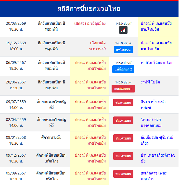 | ขึ้นชกล่าสุด | 19/12/2568 (3 เดือน ) |