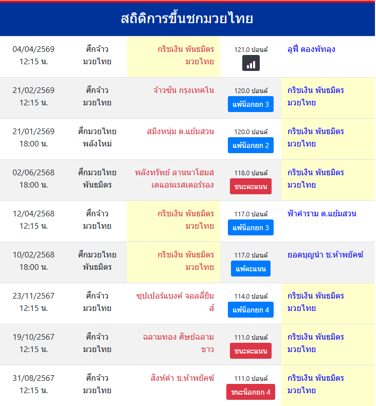 | ขึ้นชกล่าสุด | 21/2/2569 (1 เดือน 13 วัน) |