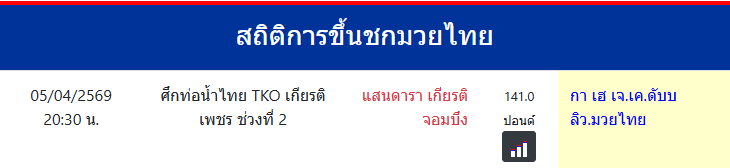 กา เฮ เจ.เค.ดับบลิว.มวยไทย "กา เฮ เจ.เค.ดับบลิว.มวยไทย" ประเทศ 🇹🇭 ไทย ลีก Muay Thai 0 ชนะ 0 แพ้ 0 เสมอ 0 KO/TKO ประวัติและชีวประวัติ สถิติการขึ้นชกมวยไทยกา เฮ เจ.เค.ดับบลิว.มวยไทย จังหวัดฮ่องกง