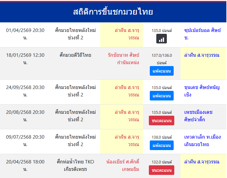 สถิติการขึ้นชกมวยไทย