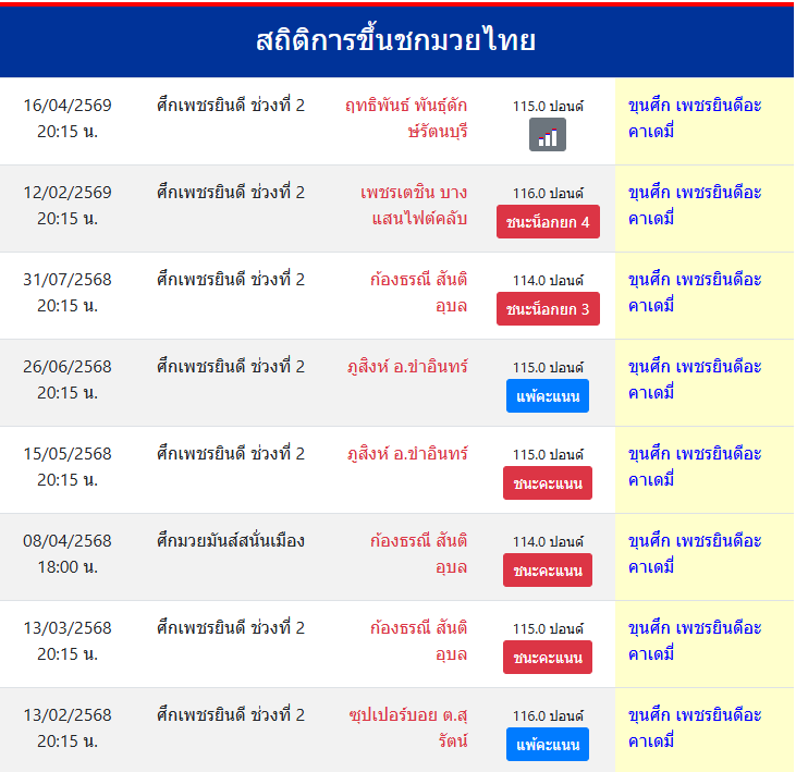 | ขึ้นชกล่าสุด | 12/2/2569 (2 เดือน 4 วัน) |
