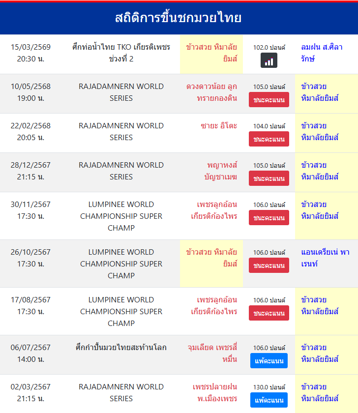 | ขึ้นชกล่าสุด | 10/5/2568 (10 เดือน 4 วัน) |