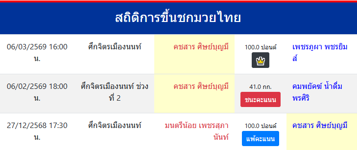 ขึ้นชกล่าสุด6/2/2569