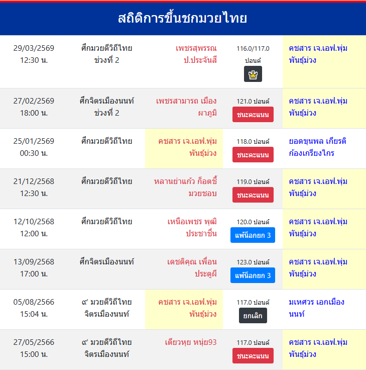 | ขึ้นชกล่าสุด | 27/2/2569 (1 เดือน 1 วัน) |