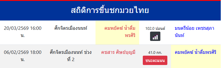 สถิติการขึ้นชกมวยไทย