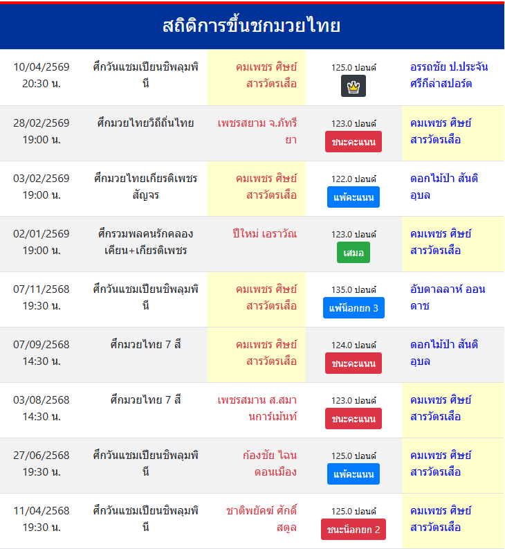 | ขึ้นชกล่าสุด | 28/2/2569 (1 เดือน 12 วัน) |