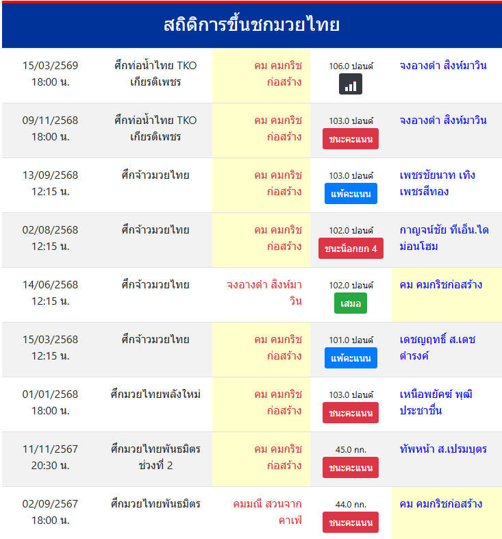 | ขึ้นชกล่าสุด | 9/11/2568 (4 เดือน 5 วัน) |
