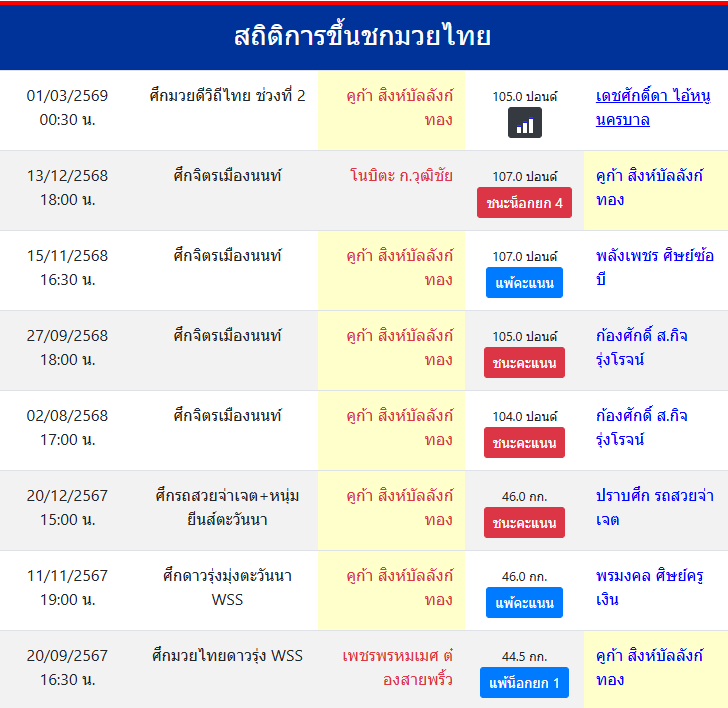 สถิติการขึ้นชกมวยไทย