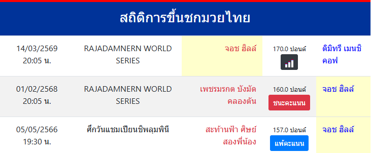 สถิติการขึ้นชกมวยไทย