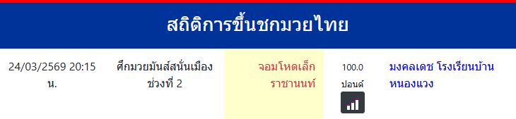 จอมโหดเล็ก ราชานนท์ "จอมโหดเล็ก ราชานนท์" ประเทศ 🇹🇭 ไทย ลีก Muay Thai 0 ชนะ 0 แพ้ 0 เสมอ 0 KO/TKO ประวัติและชีวประวัติ สถิติการขึ้นชกมวยไทยจอมโหดเล็ก ราชานนท์
