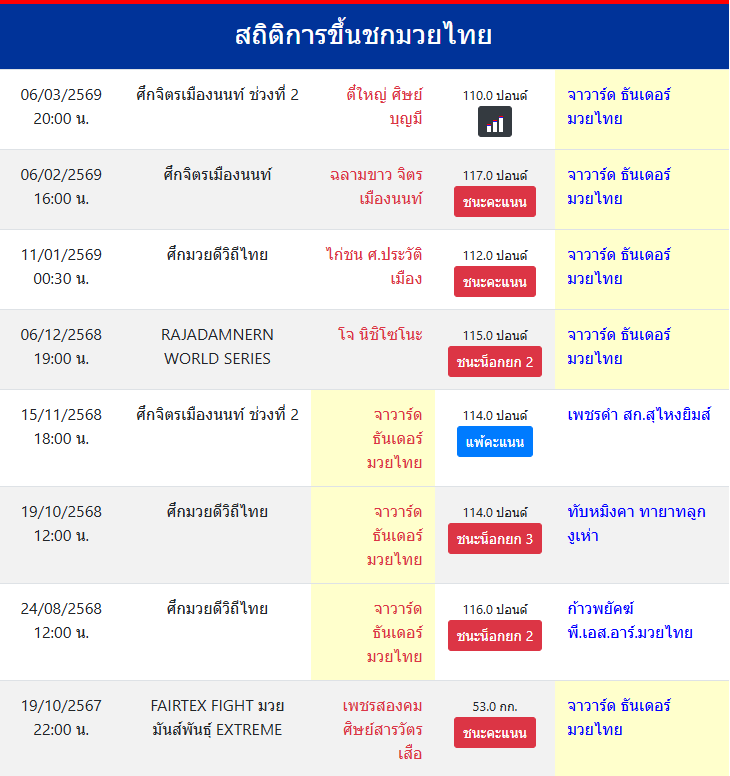 สถิติการขึ้นชกมวยไทย