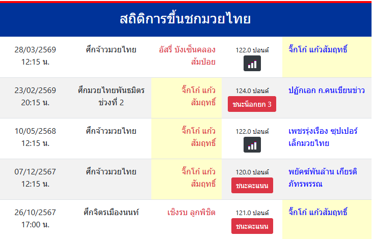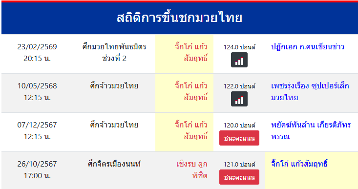 สถิติการขึ้นชกมวยไทย