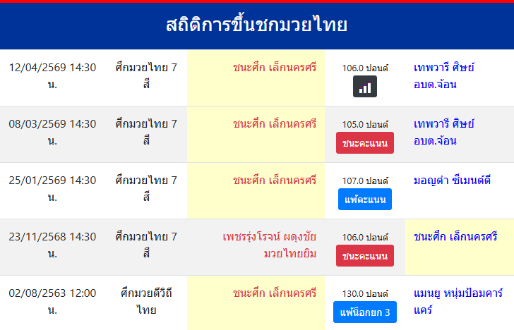 | ขึ้นชกล่าสุด | 8/3/2569 (1 เดือน 3 วัน) |