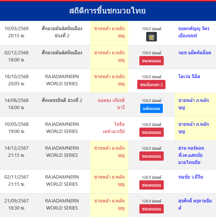 | ชกมาแล้ว | ≥ 100 ครั้ง |