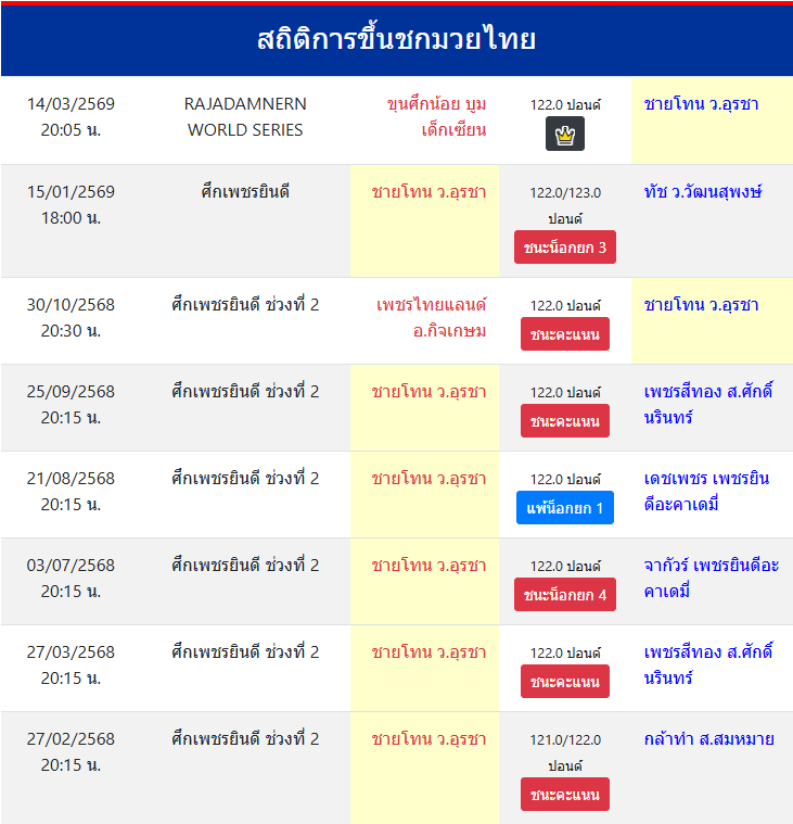 สถิติการขึ้นชกมวยไทย