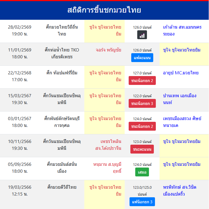 | ขึ้นชกล่าสุด | 11/1/2569 (1 เดือน 15 วัน) |