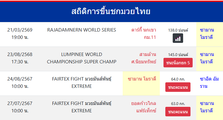 | ขึ้นชกล่าสุด | 23/8/2568 (6 เดือน 25 วัน) |