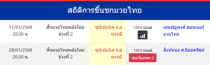 ซุปเปอร์เค ธ.สุพรรณี "ซุปเปอร์เค ธ.สุพรรณี" ประเทศ 🇹🇭 ไทย ลีก Muay Thai 0 ชนะ 0 แพ้ 0 เสมอ 0 KO/TKO ประวัติและชีวประวัติ สถิติการขึ้นชกมวยไทยซุปเปอร์เค ธ.สุพรรณี ขึ้นชกล่าสุด28/1/2569(1 เดือน 10 วัน)