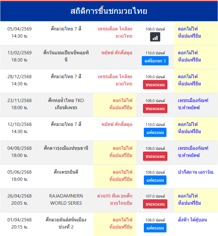 | ขึ้นชกล่าสุด | 13/2/2569 (1 เดือน 21 วัน) |