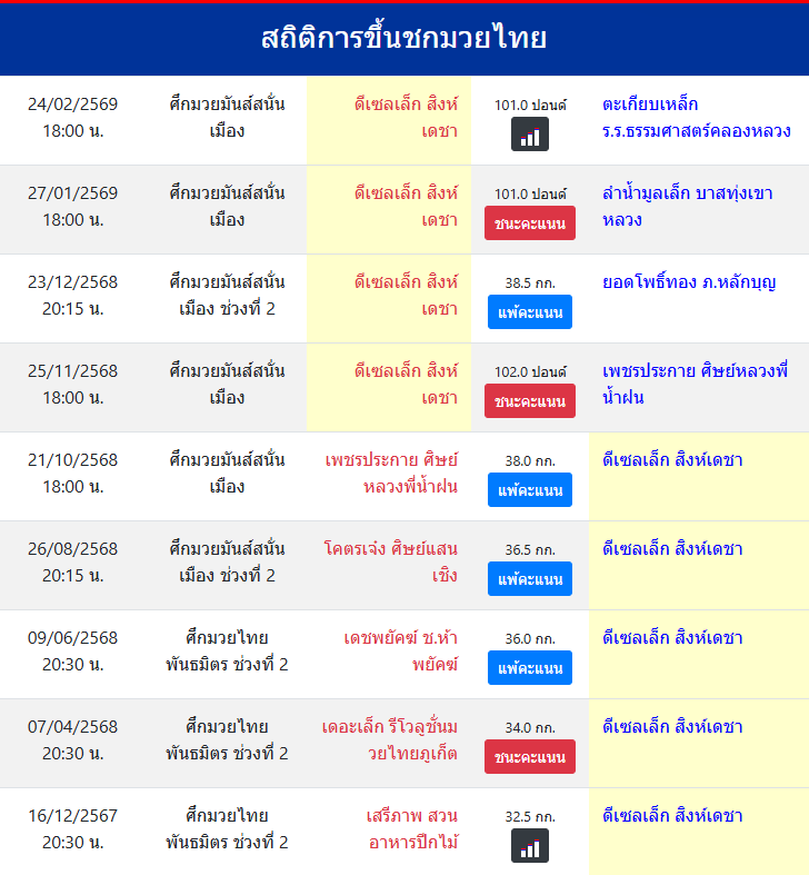 | ขึ้นชกล่าสุด | 27/1/2569 (28 วัน) |
