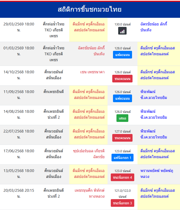 | ขึ้นชกล่าสุด | 1/3/2569 (27 วัน) |