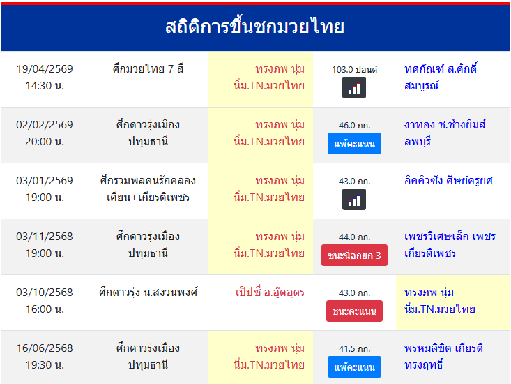 | ขึ้นชกล่าสุด | 2/2/2569 (2 เดือน 12 วัน) |