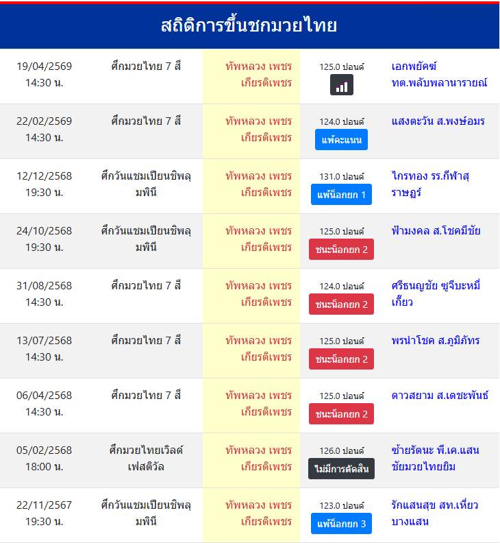 สถิติการขึ้นชกมวยไทย