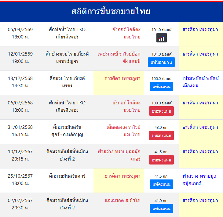 | ขึ้นชกล่าสุด | 12/1/2569 (2 เดือน 23 วัน) |
