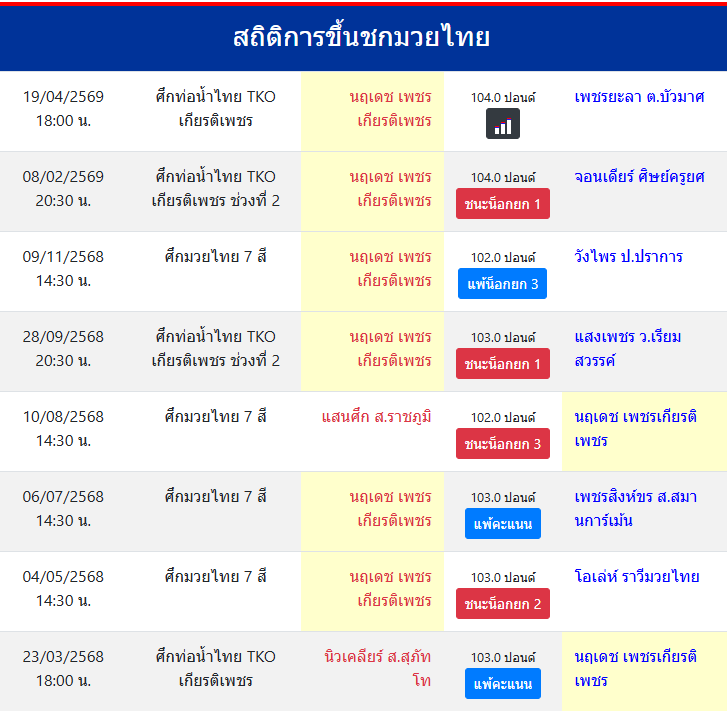 | ขึ้นชกล่าสุด | 8/2/2569 (2 เดือน 10 วัน) |