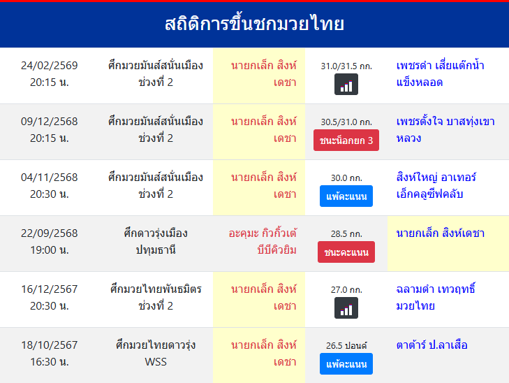 | ขึ้นชกล่าสุด | 9/12/2568 (2 เดือน 15 วัน) |
