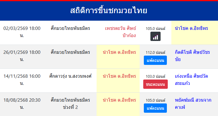 สถิติการขึ้นชกมวยไทย