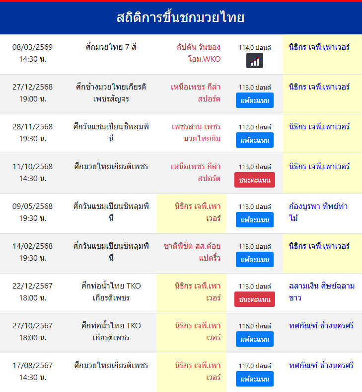 | ขึ้นชกล่าสุด | 27/12/2568 (2 เดือน 8 วัน) |