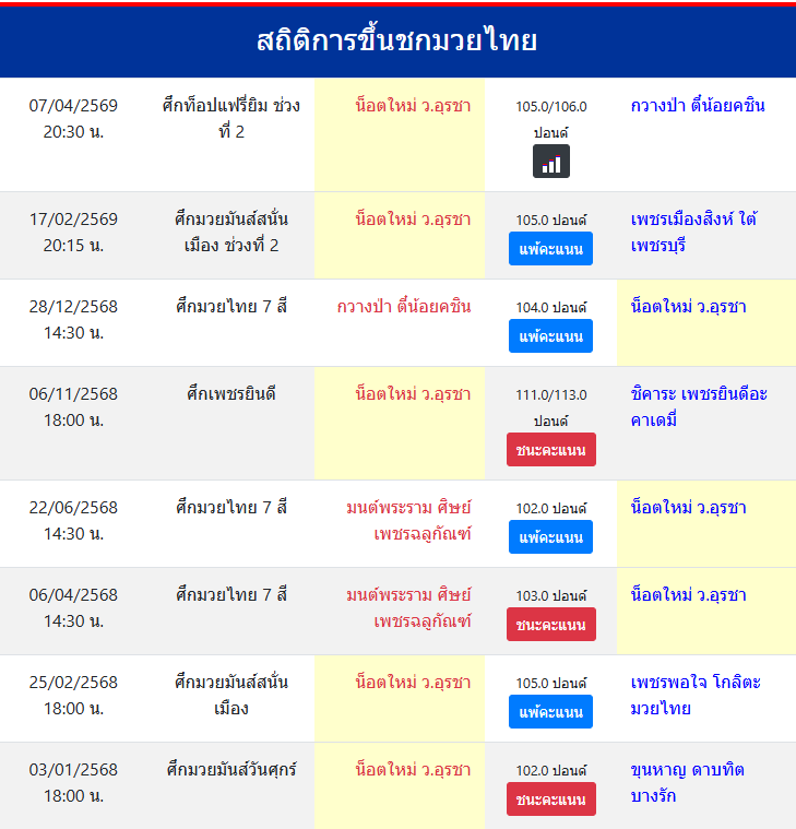 สถิติการขึ้นชกมวยไทย
