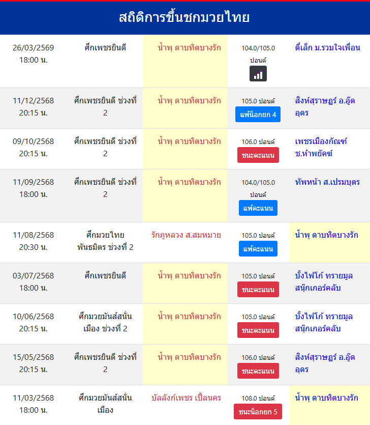 | ขึ้นชกล่าสุด | 11/12/2568 (3 เดือน 12 วัน) |