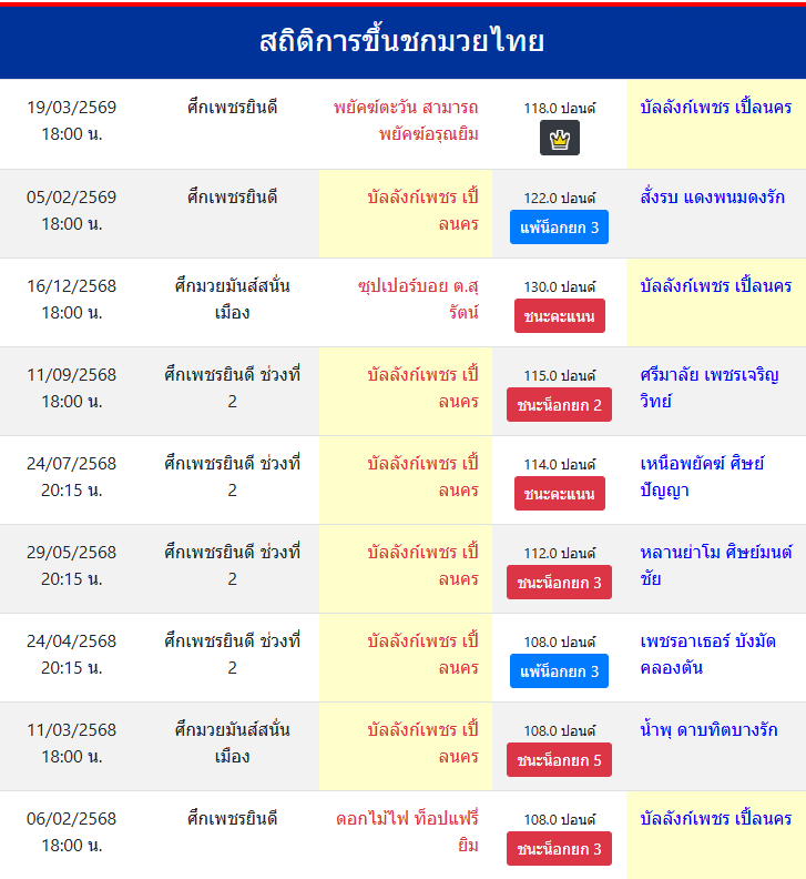 | ขึ้นชกล่าสุด | 5/2/2569 (1 เดือน 14 วัน) |