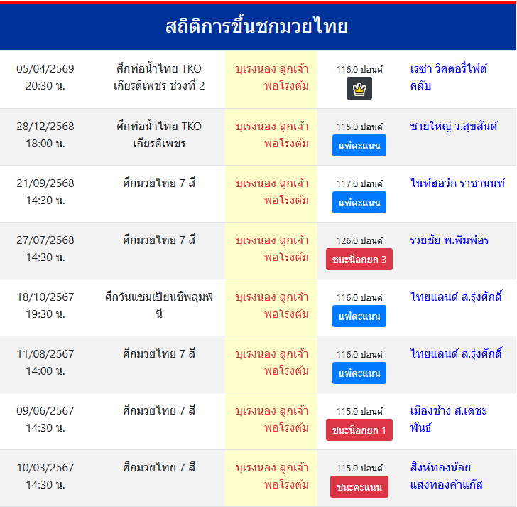 | ขึ้นชกล่าสุด | 28/12/2568 (3 เดือน 7 วัน) |