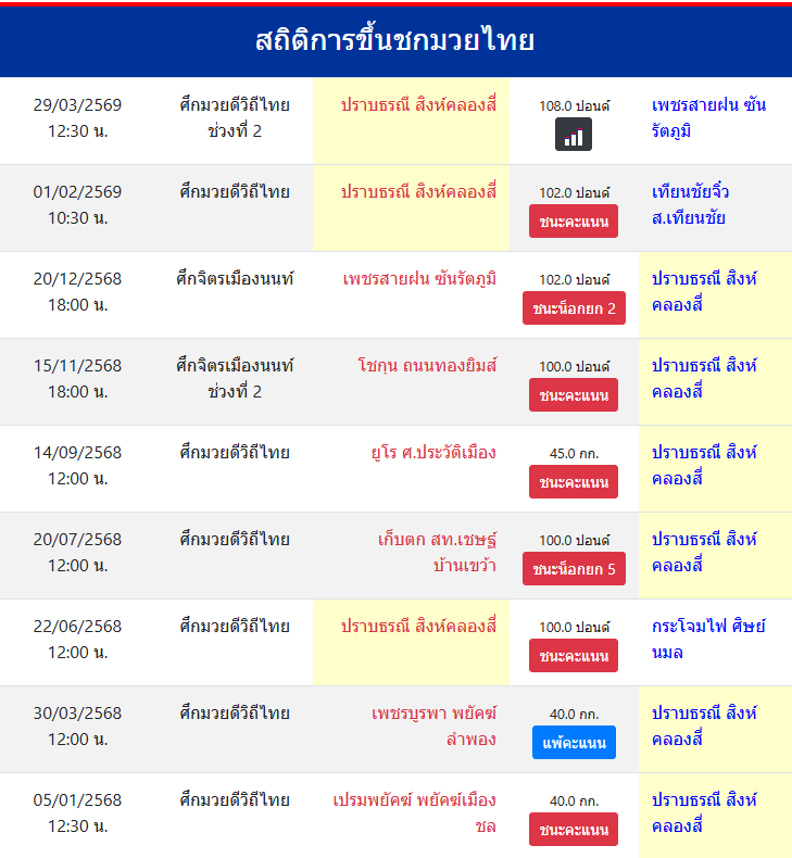 | ขึ้นชกล่าสุด | 26/2/2569 (1 เดือน 2 วัน) |