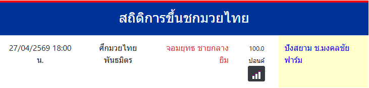 ปังสยาม ช.มงคลชัยฟาร์ม "ปังสยาม ช.มงคลชัยฟาร์ม" ประเทศ 🇹🇭 ไทย ลีก Muay Thai 0 ชนะ 0 แพ้ 0 เสมอ 0 KO/TKO ประวัติและชีวประวัติ สถิติการขึ้นชกมวยไทยปังสยาม ช.มงคลชัยฟาร์ม