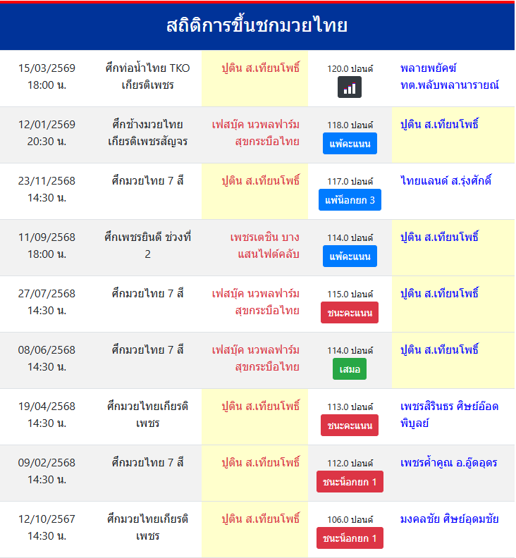 | ขึ้นชกล่าสุด | 12/1/2569 (2 เดือน 2 วัน) |