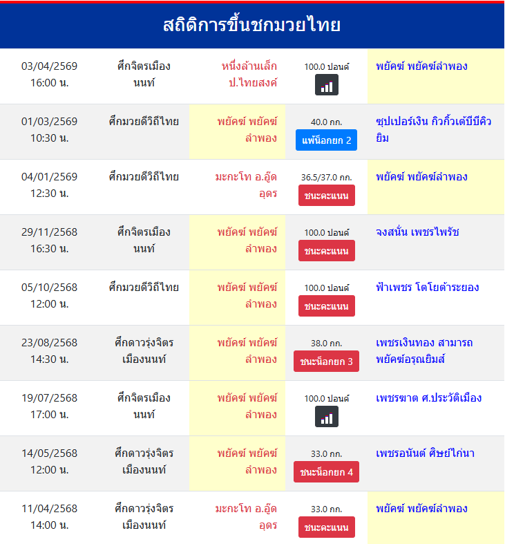 | ขึ้นชกล่าสุด | 1/3/2569 (1 เดือน 1 วัน) |