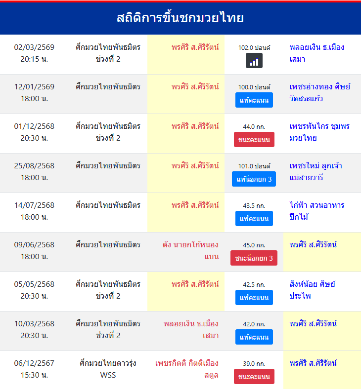 | ขึ้นชกล่าสุด | 12/1/2569 (1 เดือน 18 วัน) |