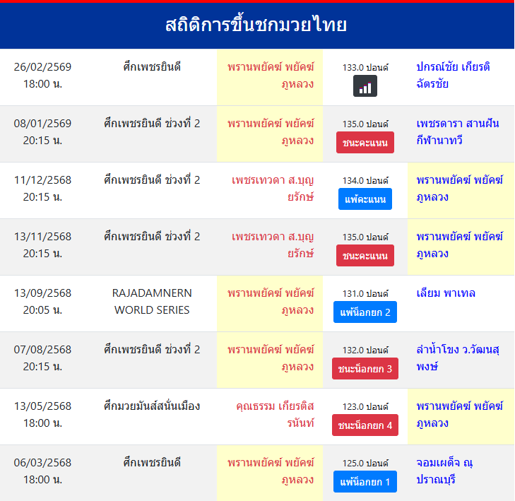 สถิติการขึ้นชกมวยไทย