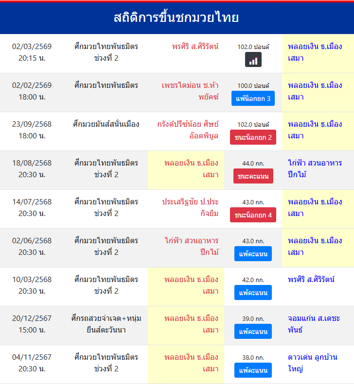 | ขึ้นชกล่าสุด | 2/2/2569 (1 เดือน ) |