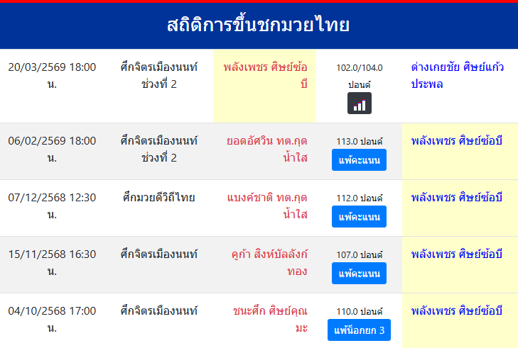 สถิติการขึ้นชกมวยไทย