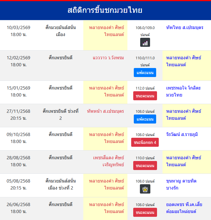 | ขึ้นชกล่าสุด | 12/2/2569 (25 วัน) |