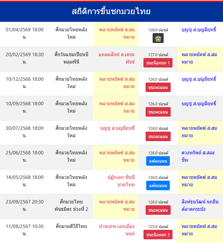 | ขึ้นชกล่าสุด | 20/2/2569 (1 เดือน 12 วัน) |