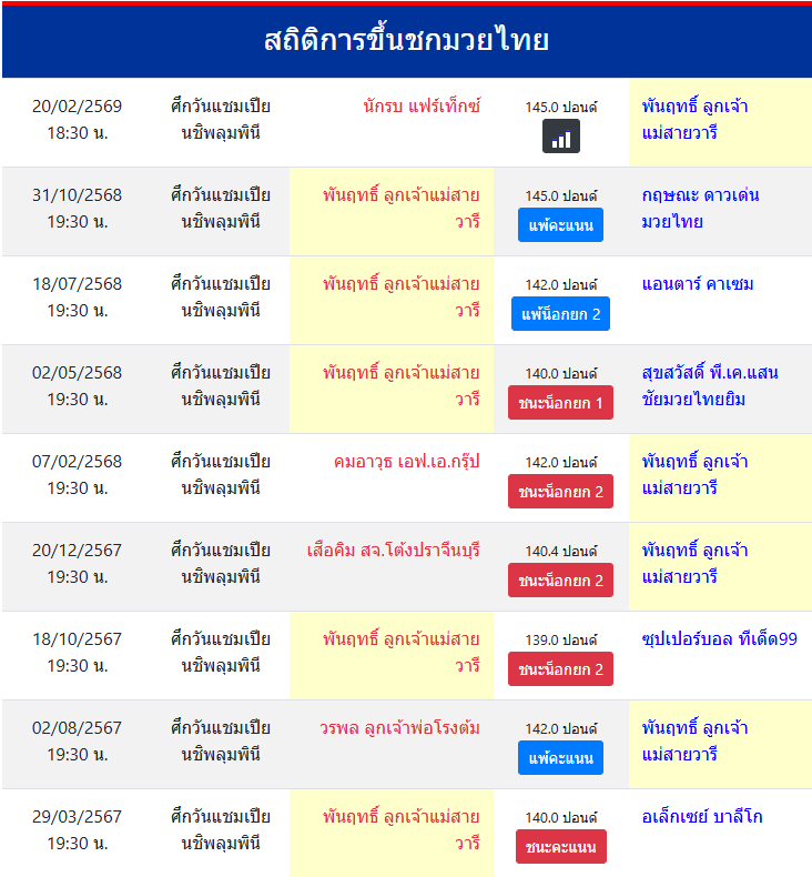ขึ้นชกล่าสุด31/10/2568