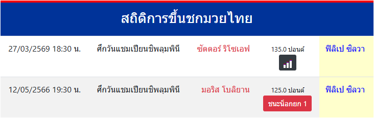 สถิติการขึ้นชกมวยไทย
