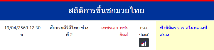 | ขึ้นชกล่าสุด | 6/12/2568 (4 เดือน 12 วัน) |
