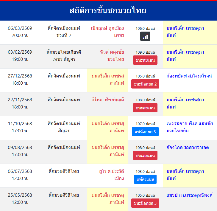 | ขึ้นชกล่าสุด | 3/2/2569 (1 เดือน 1 วัน) |